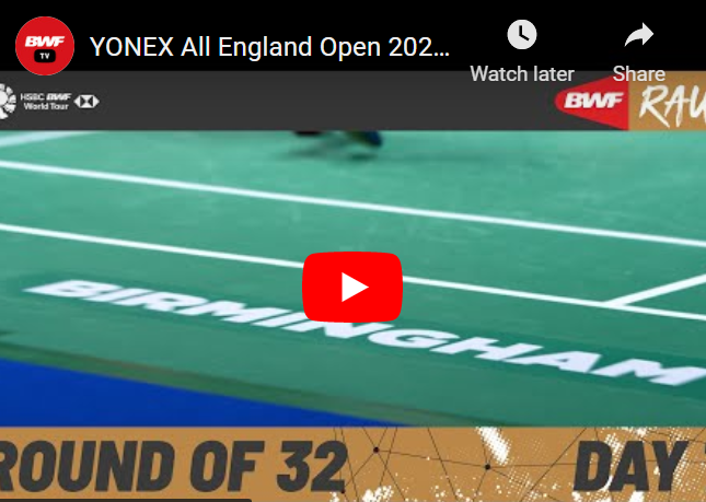 【高清视频】YONEX 全英公開賽 2022 -- 第一天 -- 2號球場 -- 32強