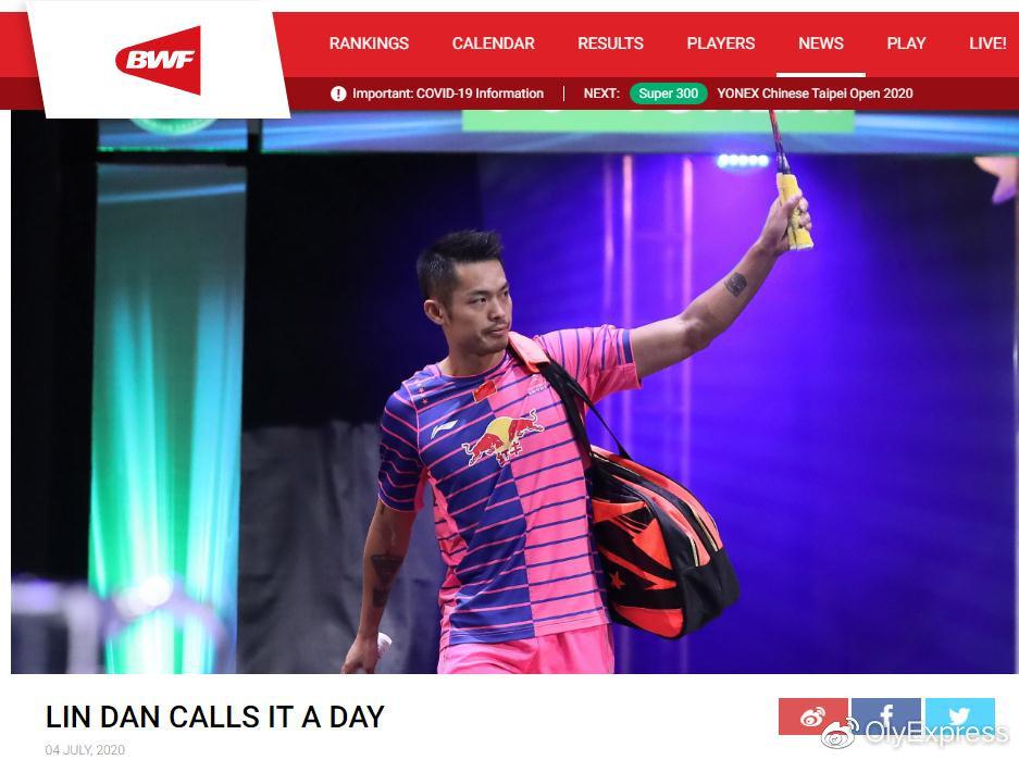 7月4日,羽毛球奥运冠军林丹宣布退役,世界羽联和国际奥委会奥运频道均发表文章,高度评价了林丹辉煌的职业生涯,称赞其为21世纪最卓越的男单运动员,为大场面而生的男人。