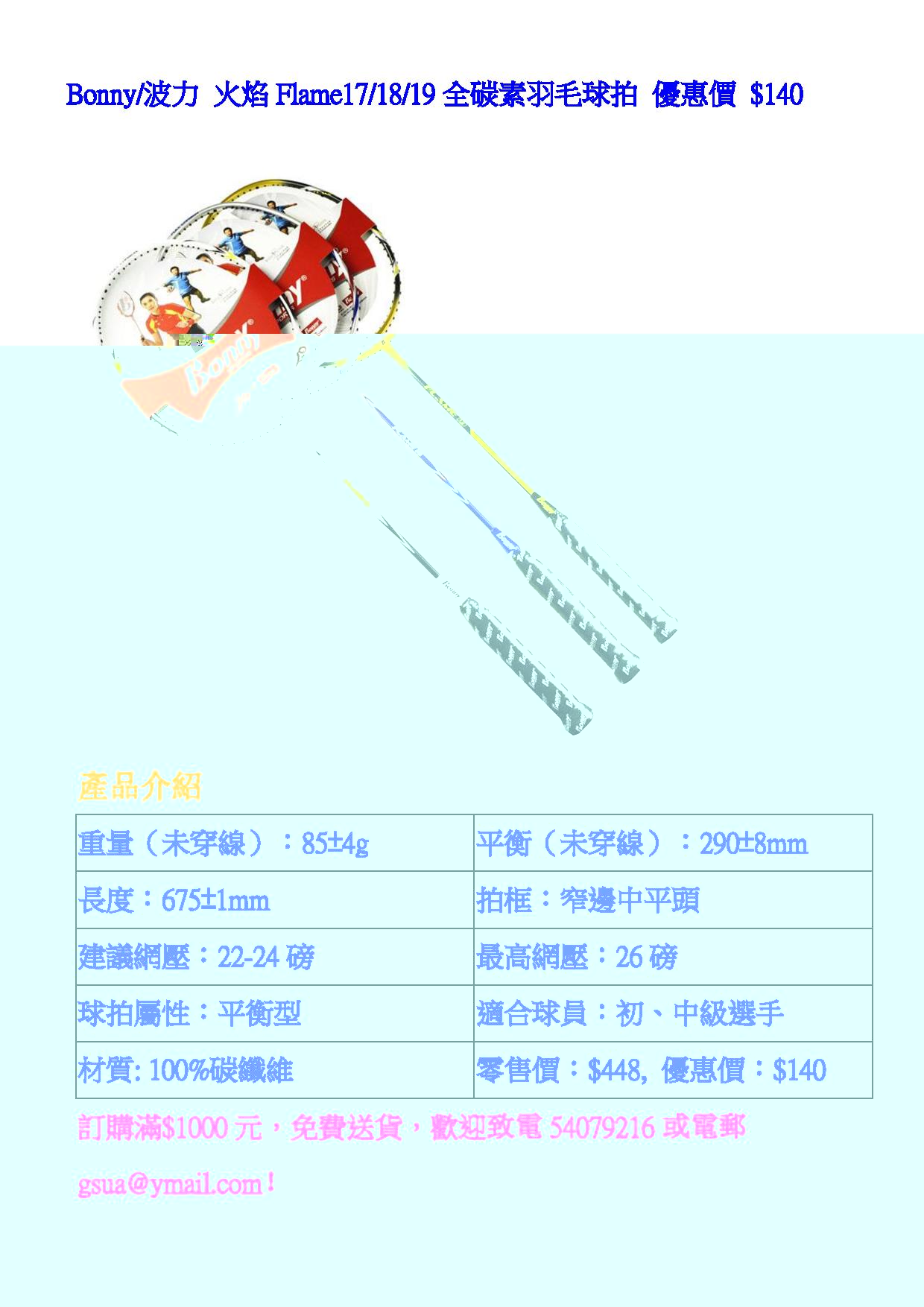 Flame 17-19 羽毛球拍 $140