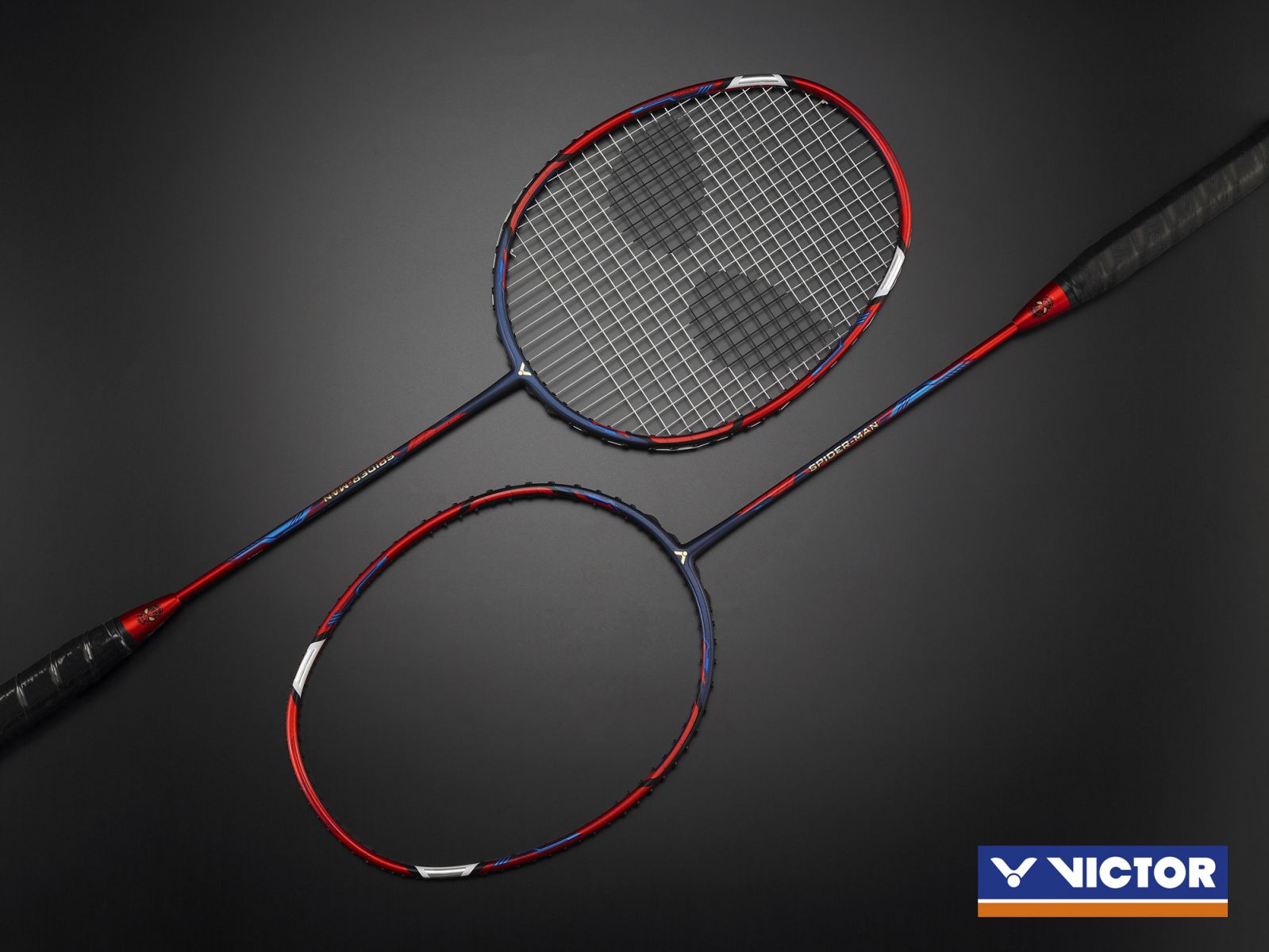 經典的蜘蛛人紅加深藍配色,表面消光低調處理,蜘蛛人眼睛造型巧妙點綴於拍框,賦予球拍屬於蜘蛛人不可取代的經典形象。蜘蛛人系列球拍採用VICTOR頂尖球拍技術,輕量與力量兼具,與蜘蛛人形象不謀而合。